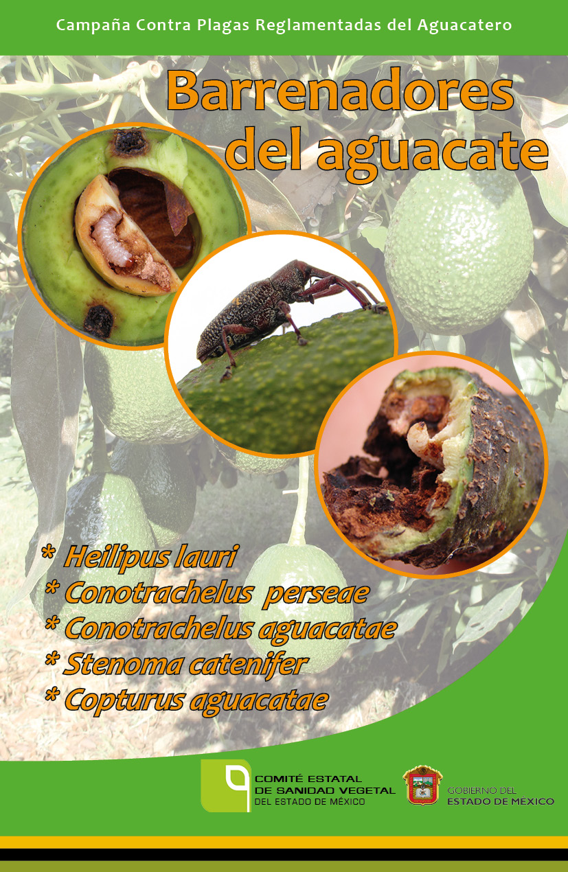 En el municipio de Ixtapan del Oro se continúan las acciones de control debido a la presencia de barrenador grande del hueso, Heilipus lauri, en Coatepec Harinas se detecta la presencia de barrenador pequeño del hueso, Conotrachelus perseae así como H. Lauri.