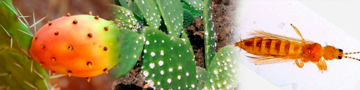 Daños: Las ninfas y hembras adultas succionan la savia de pencas y frutos, lo que ocasiona áreas cloróticas ligeramente hundidas. En ataques severos debilita la planta, causa la caída de pencas y frutos antes de la maduración y posteriormente la muerte de la planta.