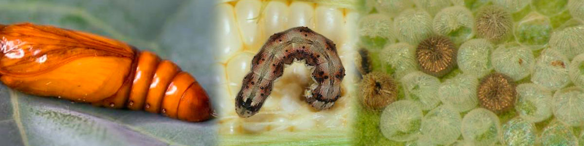 * En maíz las larvas invaden las mazorcas y consumen el grano en desarrollo.