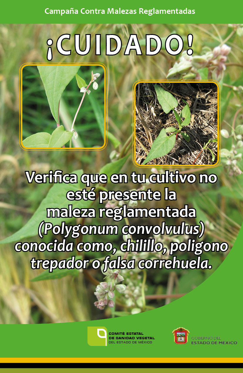 Actualmente en el Estado de México se tiene identificada la presencia de una especie de maleza reglamentada (Polygonum convolvulus), conocida comúnmente como Polígono trepador ó falsa correhuela, en los municipios de Apaxco, Huehuetoca, Jilotepec, Ixtapaluca y Texcoco, en los cultivos de avena, trigo, triticale, cebada y maíz.